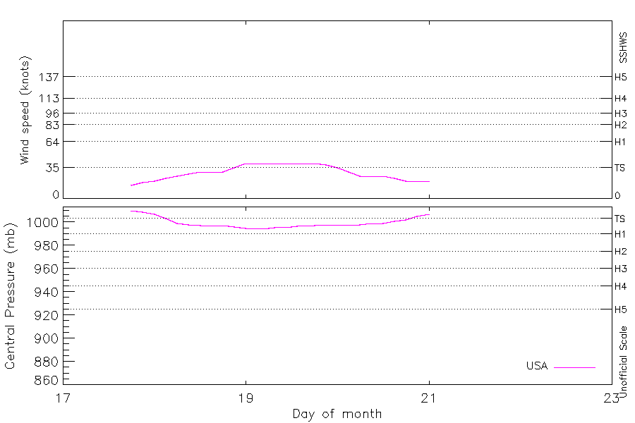 40 kt (May 19 00Z), 995 mb (May 19 00Z) |