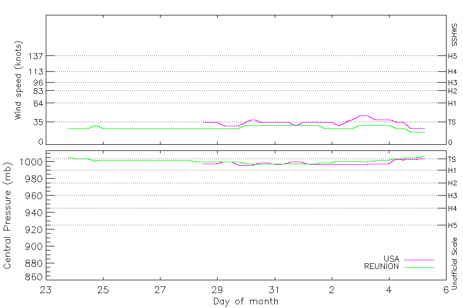 45 kt (Feb 3 00Z), 996 mb (Jan 29 18Z) |