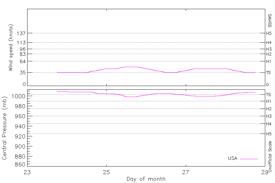 50 kt (Aug 25 12Z), 999 mb (Aug 25 12Z) |
