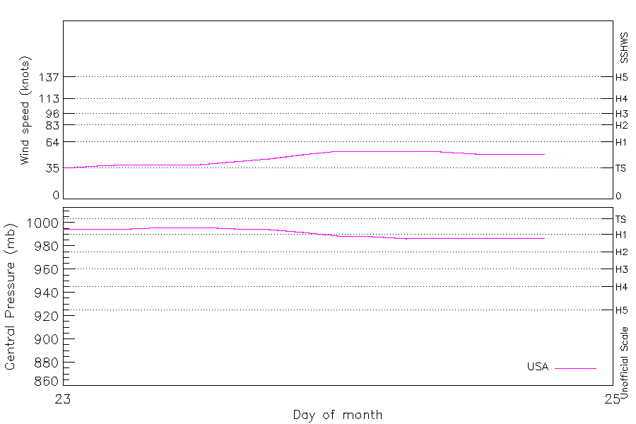 54 kt (Jan 24 00Z), 986 mb (Jan 24 06Z) |