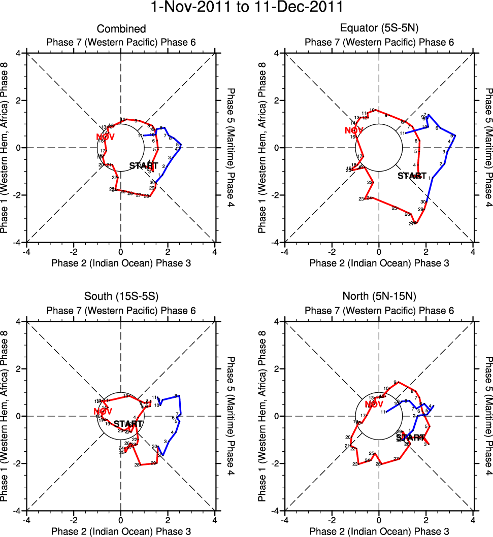 Wheeler and Hendon (2004) constructed the RMM index for monitoring the MJO. This index consists of the first two principal components (PCs) of OLR, 850-hPa zonal wind, and 200-hPa zonal wind averaged 15S-15N.