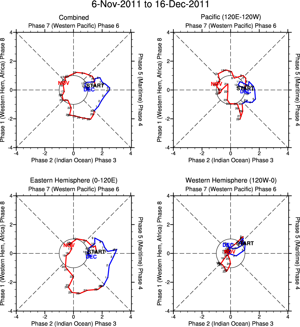 Wheeler and Hendon (2004) constructed the RMM index for monitoring the MJO. This index consists of the first two principal components (PCs) of OLR, 850-hPa zonal wind, and 200-hPa zonal wind averaged 15S-15N.