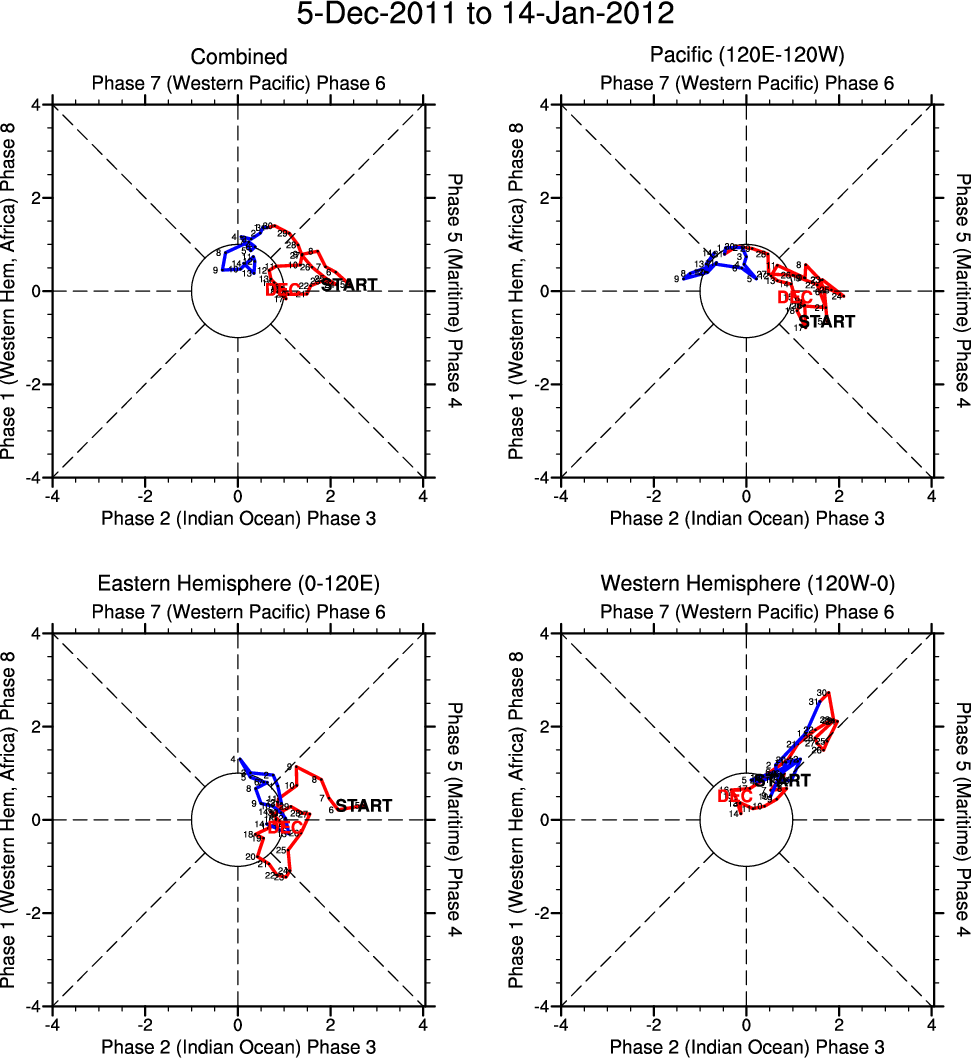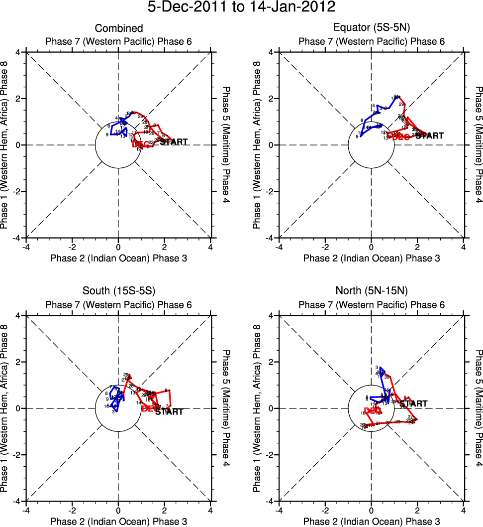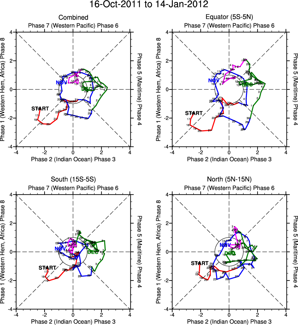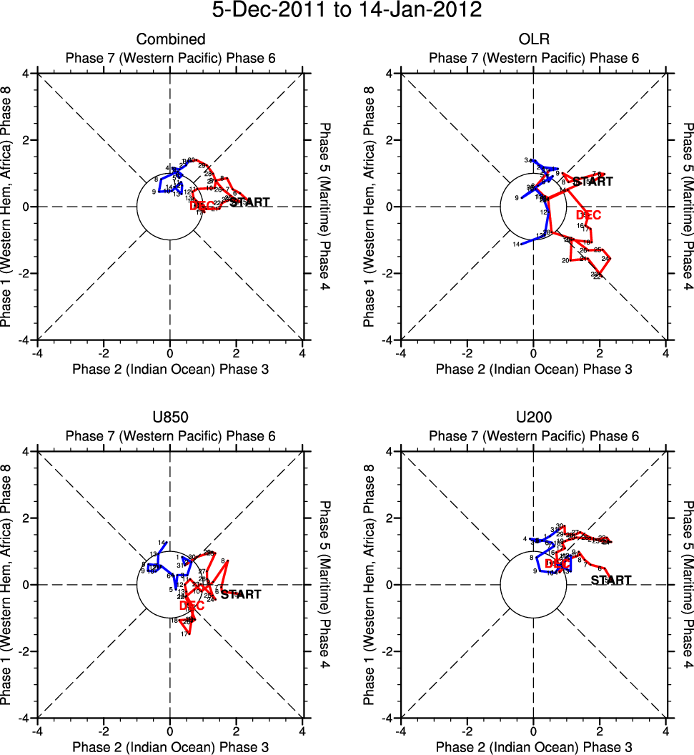 Wheeler and Hendon (2004) constructed the RMM index for monitoring the MJO. This index consists of the first two principal components (PCs) of OLR, 850-hPa zonal wind, and 200-hPa zonal wind averaged 15S-15N.