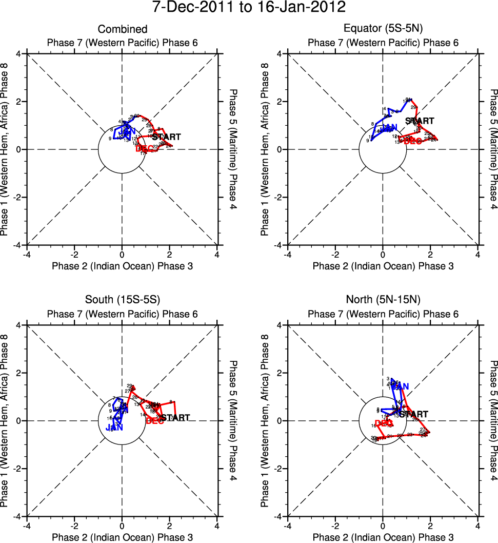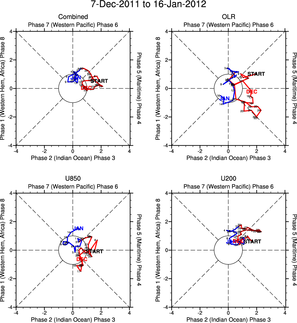 Wheeler and Hendon (2004) constructed the RMM index for monitoring the MJO. This index consists of the first two principal components (PCs) of OLR, 850-hPa zonal wind, and 200-hPa zonal wind averaged 15S-15N.