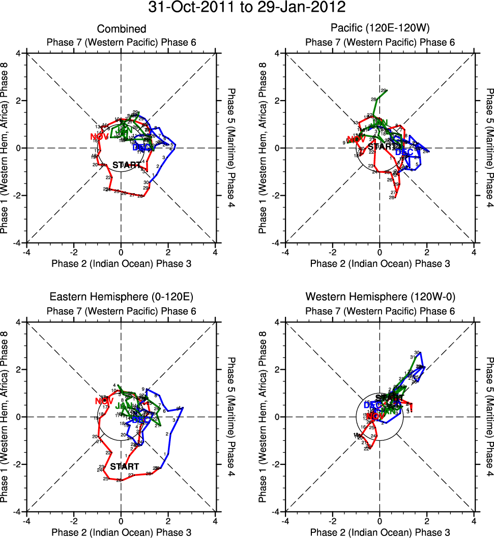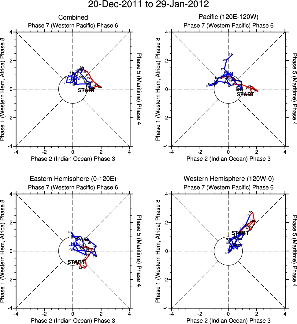Wheeler and Hendon (2004) constructed the RMM index for monitoring the MJO. This index consists of the first two principal components (PCs) of OLR, 850-hPa zonal wind, and 200-hPa zonal wind averaged 15S-15N.