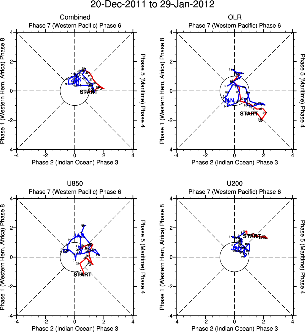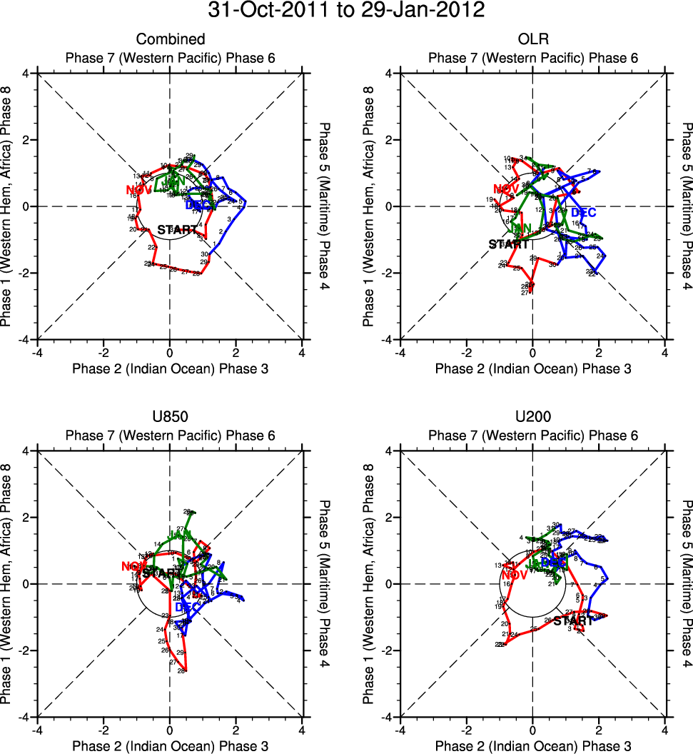 Wheeler and Hendon (2004) constructed the RMM index for monitoring the MJO. This index consists of the first two principal components (PCs) of OLR, 850-hPa zonal wind, and 200-hPa zonal wind averaged 15S-15N.