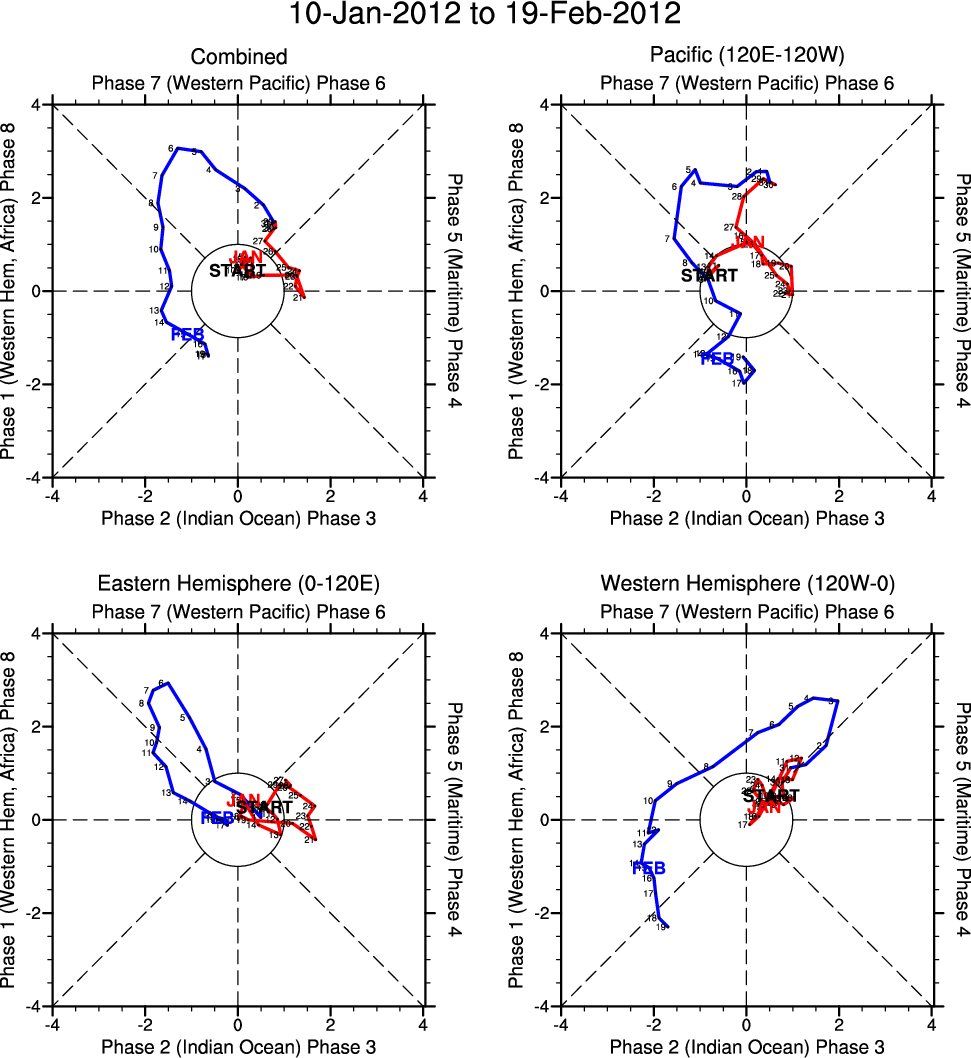 Wheeler and Hendon (2004) constructed the RMM index for monitoring the MJO. This index consists of the first two principal components (PCs) of OLR, 850-hPa zonal wind, and 200-hPa zonal wind averaged 15S-15N.