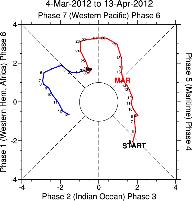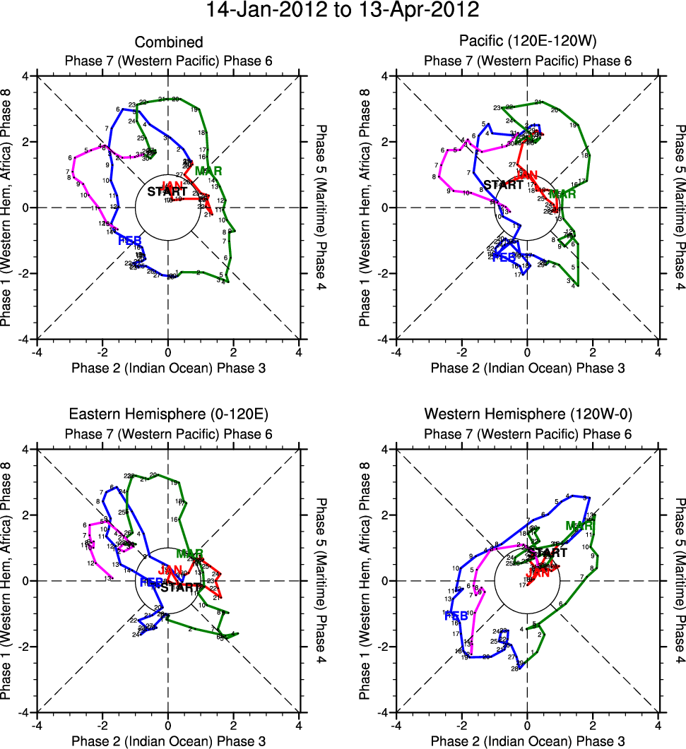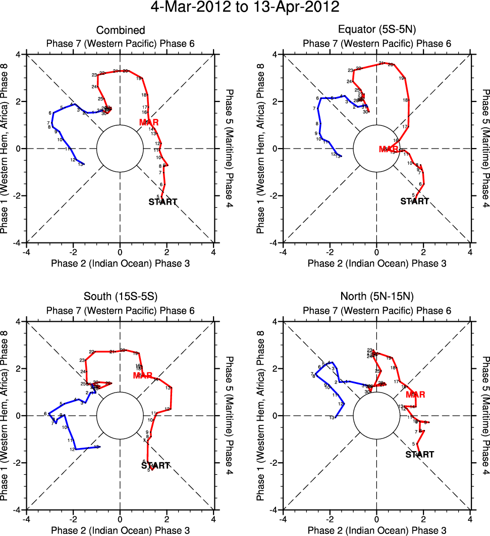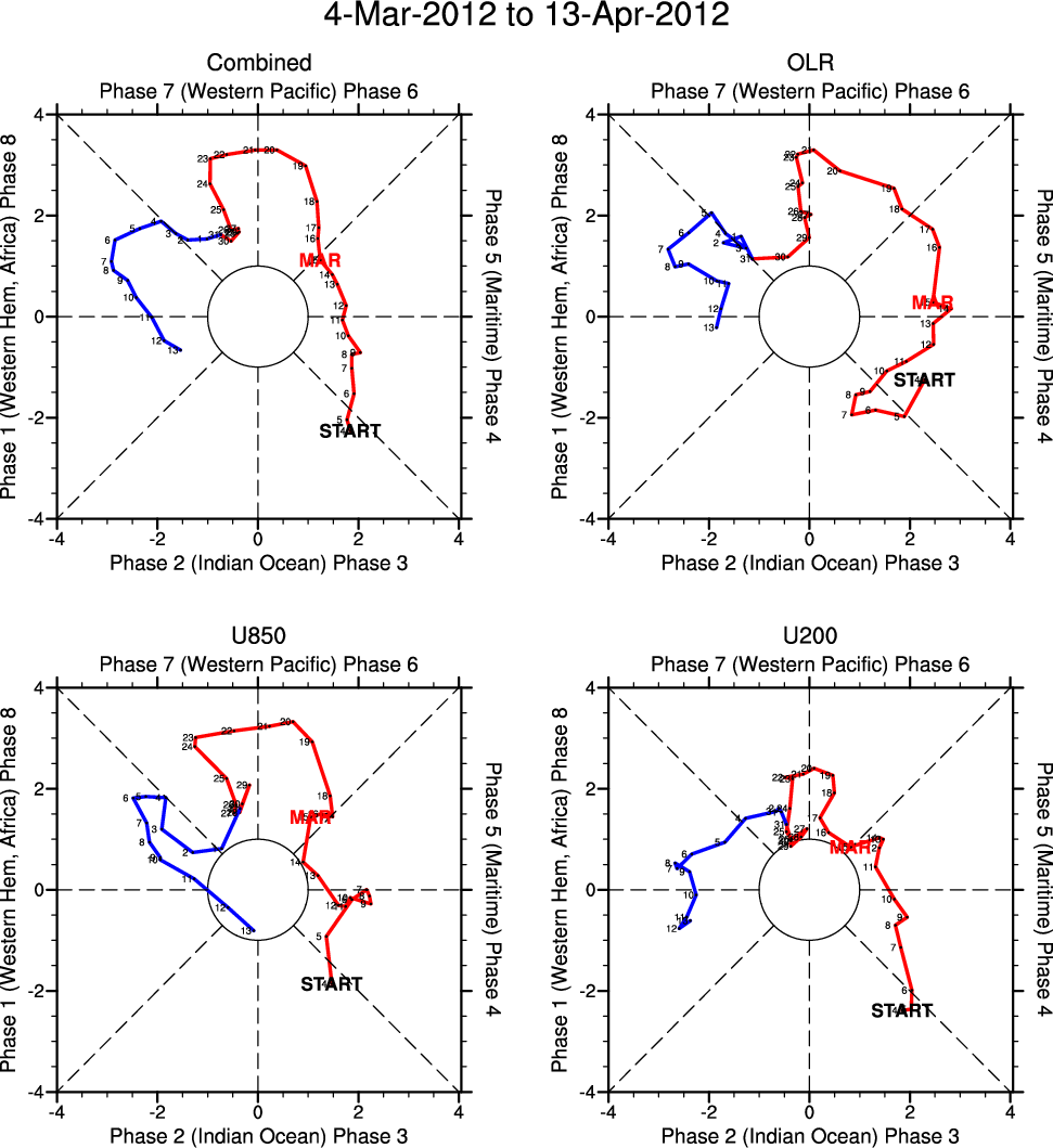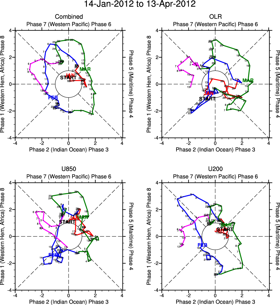 Wheeler and Hendon (2004) constructed the RMM index for monitoring the MJO. This index consists of the first two principal components (PCs) of OLR, 850-hPa zonal wind, and 200-hPa zonal wind averaged 15S-15N.