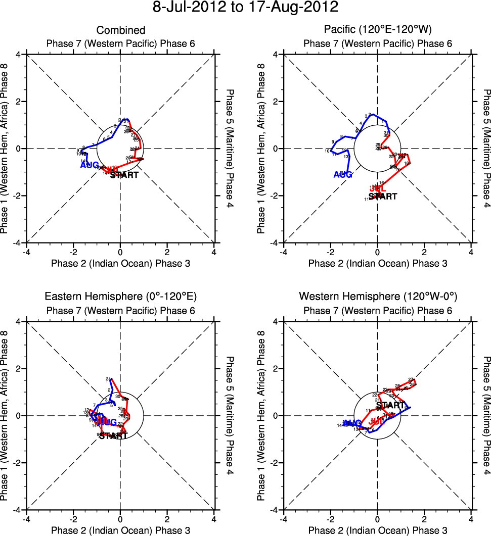 Wheeler and Hendon (2004) constructed the RMM index for monitoring the MJO. This index consists of the first two principal components (PCs) of OLR, 850-hPa zonal wind, and 200-hPa zonal wind averaged 15S-15N.