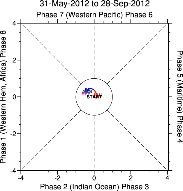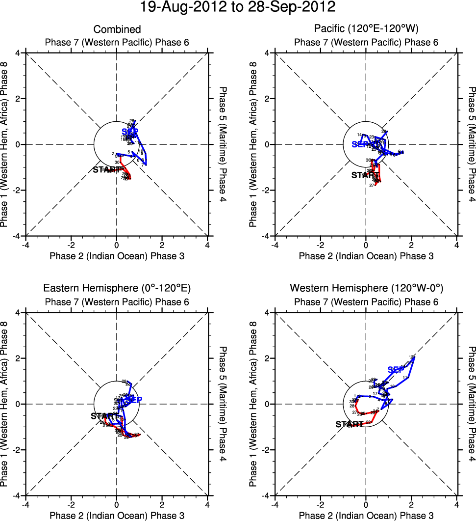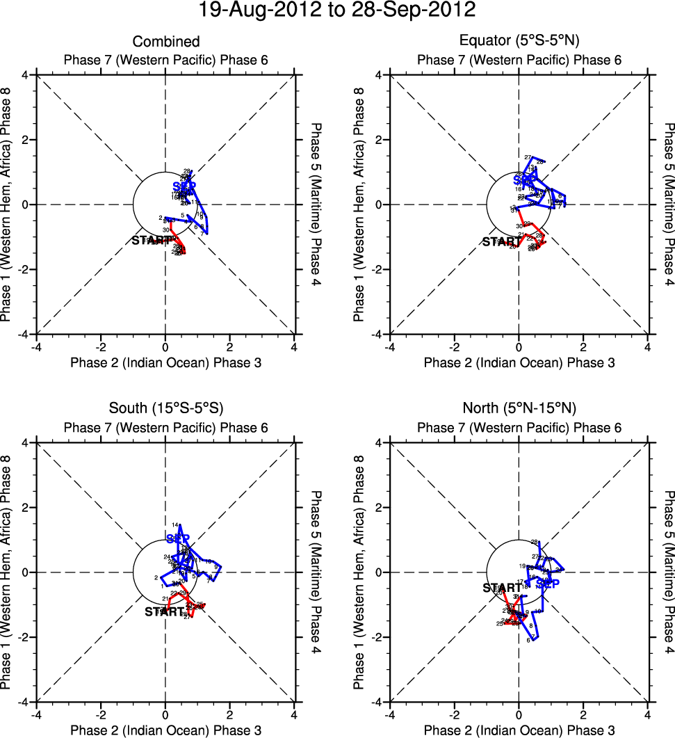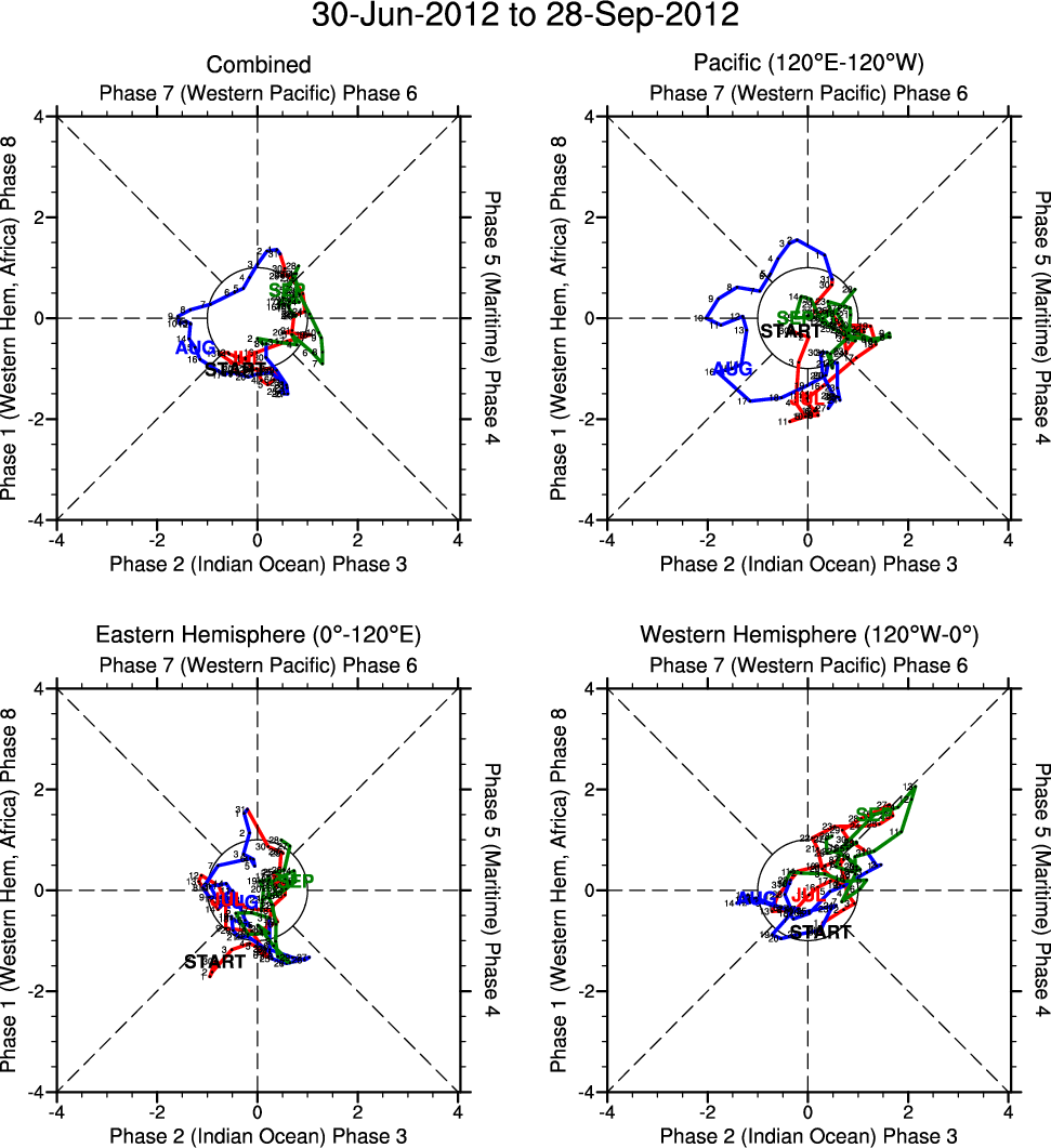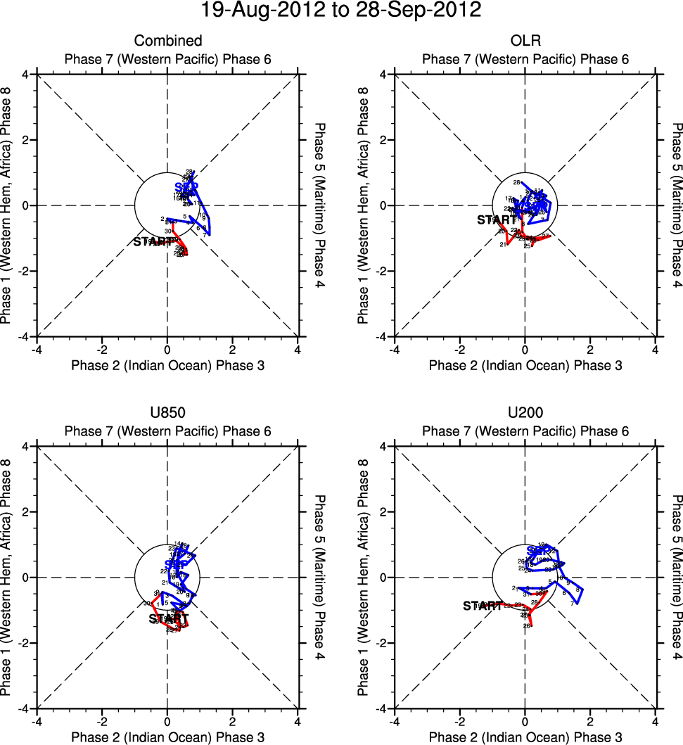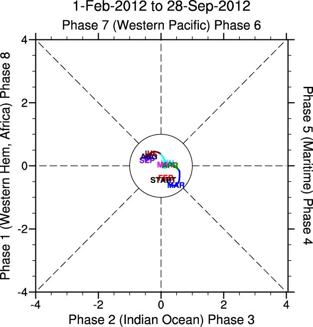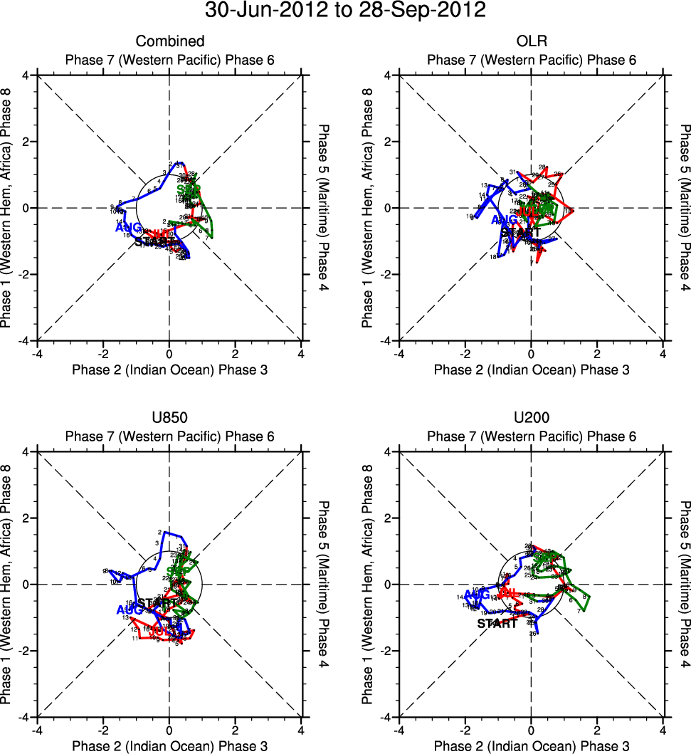 Wheeler and Hendon (2004) constructed the RMM index for monitoring the MJO. This index consists of the first two principal components (PCs) of OLR, 850-hPa zonal wind, and 200-hPa zonal wind averaged 15S-15N.