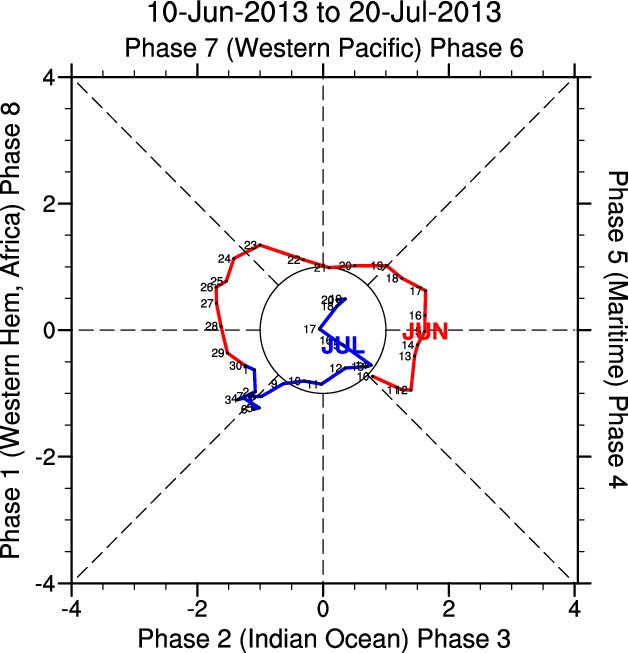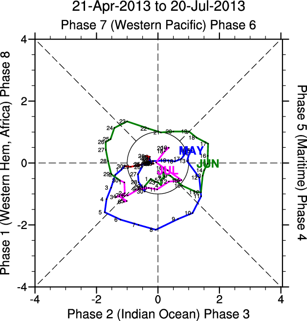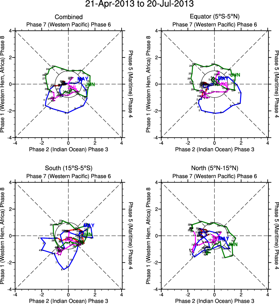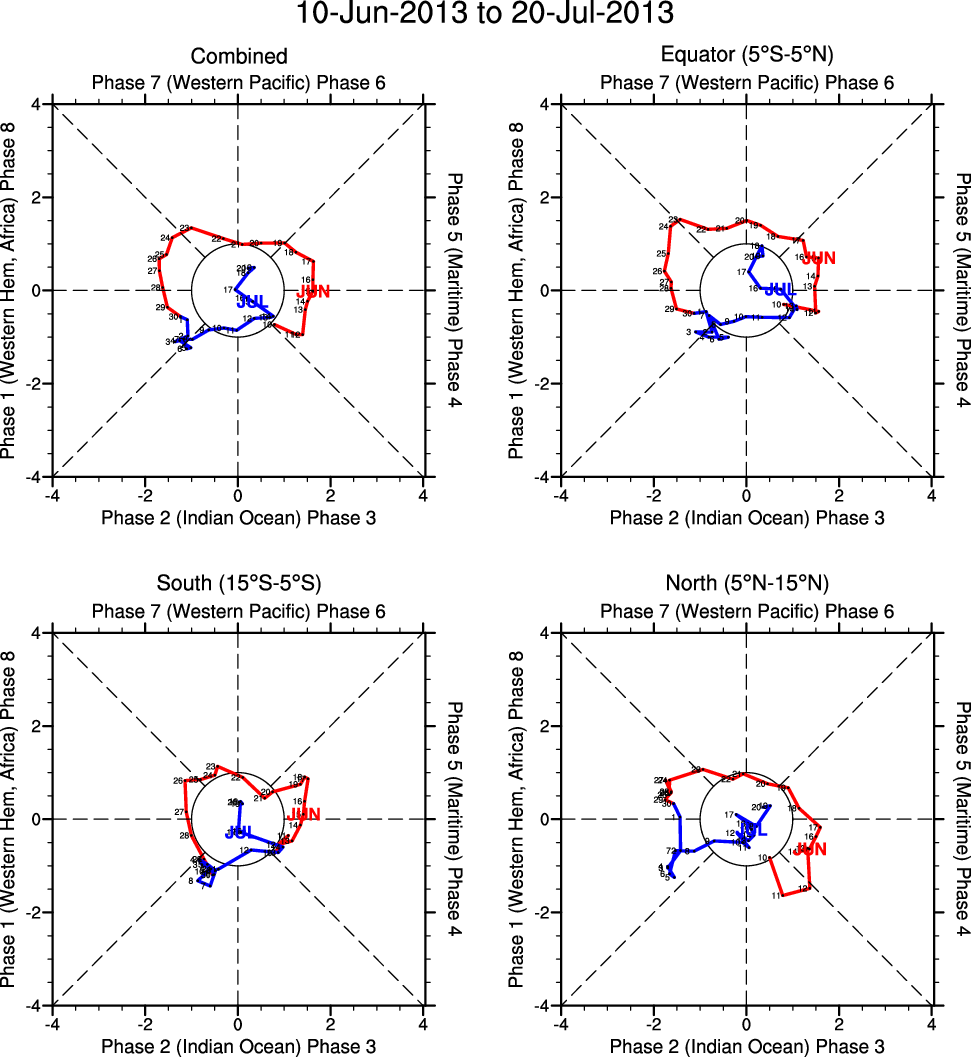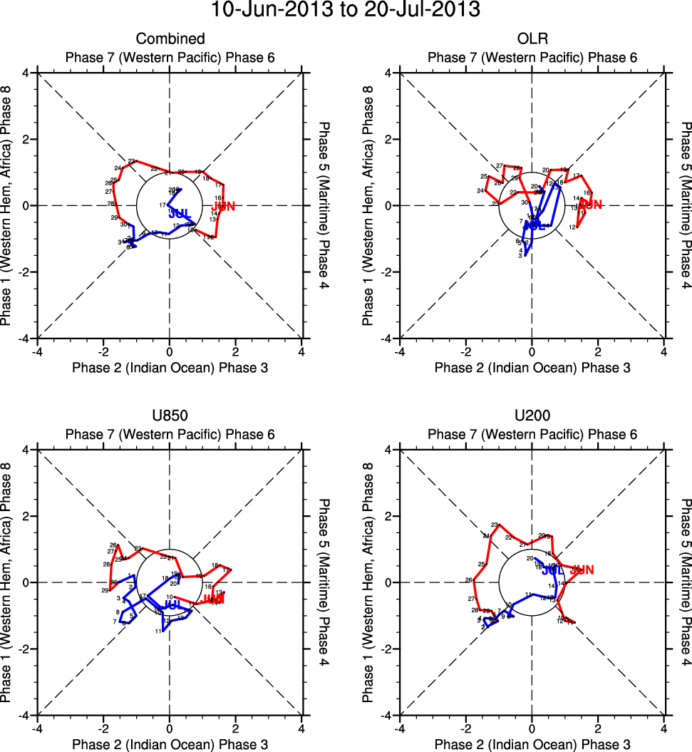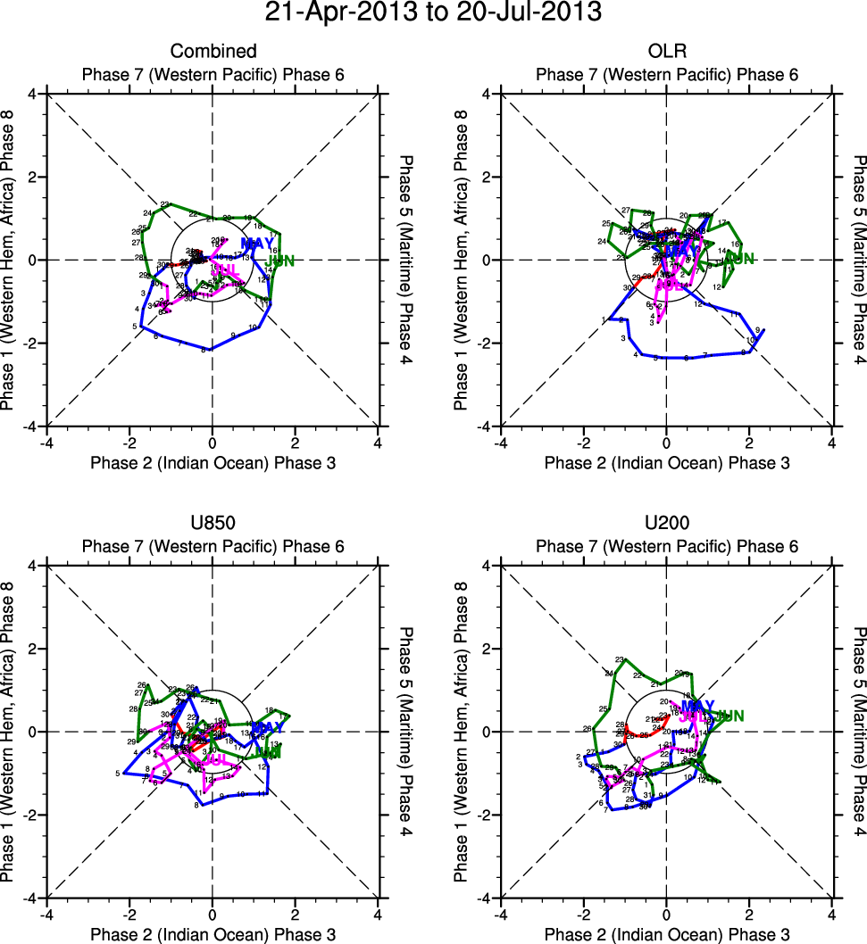 Wheeler and Hendon (2004) constructed the RMM index for monitoring the MJO. This index consists of the first two principal components (PCs) of OLR, 850-hPa zonal wind, and 200-hPa zonal wind averaged 15S-15N.