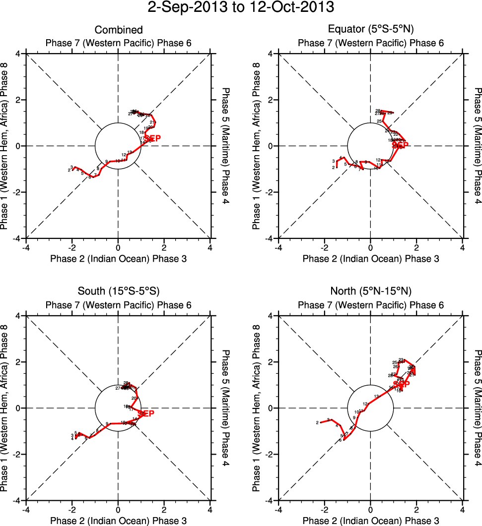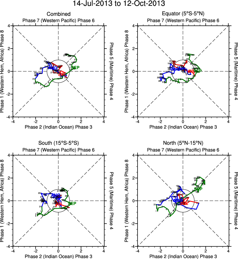 Wheeler and Hendon (2004) constructed the RMM index for monitoring the MJO. This index consists of the first two principal components (PCs) of OLR, 850-hPa zonal wind, and 200-hPa zonal wind averaged 15S-15N.
